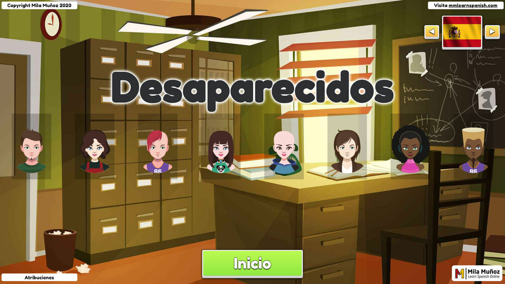 Haz que tus estudiantes formen parte de la agencia de detectives en Desaparecidos, un juego interactivo y divertido lleno de lugares y diferentes personajes para hacer que tus estudiantes de idiomas hablen por los codos. El alumno debe hacer preguntas para averiguar en primer lugar la ubicación y en segundo lugar su apariencia física. El objetivo es encontrar a la persona desaparecida. Una vez encontrada deberán rellenar un informe con los datos y detalles del desaparecido para recibir la recompensa.